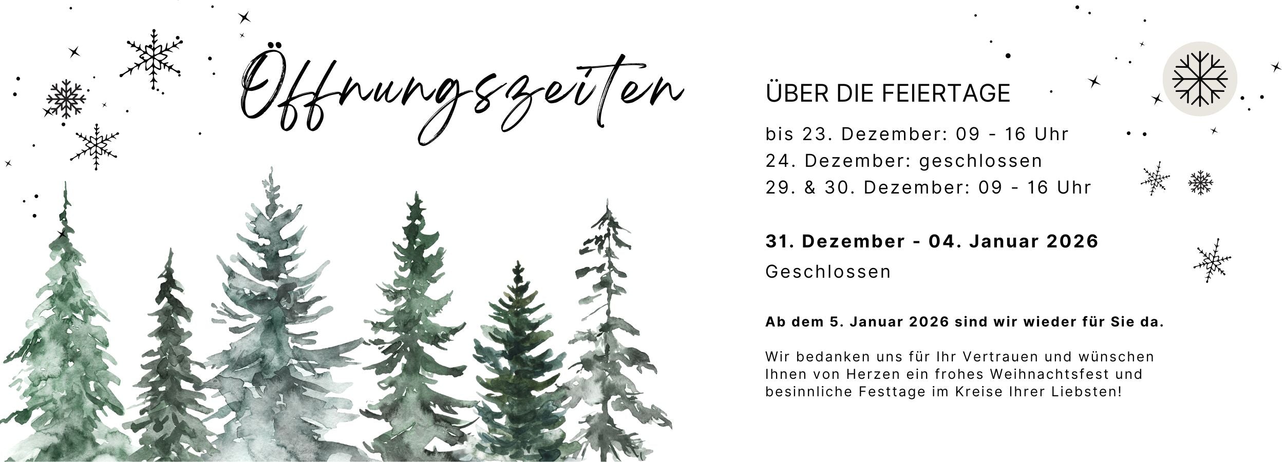Öffnungszeiten: Montag - Freitag von 09:00 - 15:00 Uhr